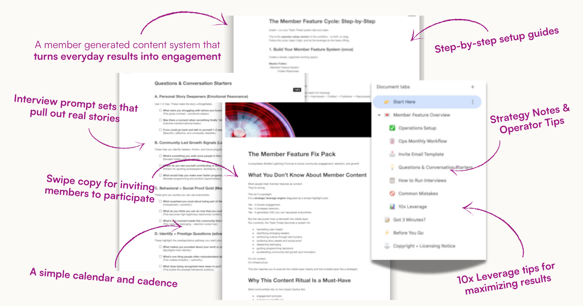 You get the exact system used to run clean, compelling member features without turning the process into a second job.